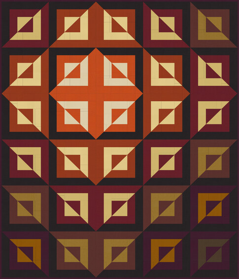 The small and large half-square triangles in the Just Kisses quilt really shine when different contrasts are introduced.